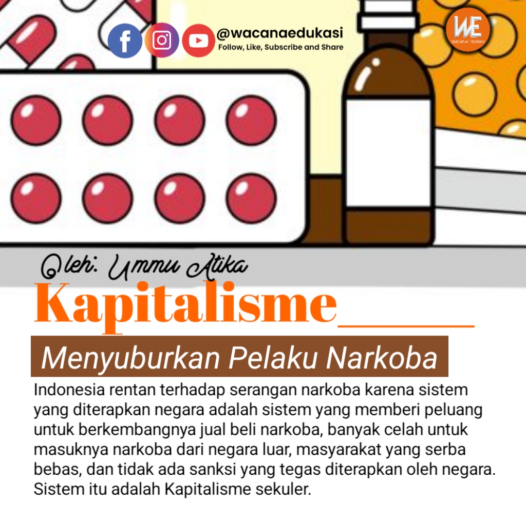 Indonesia rentan terhadap serangan narkoba karena sistem yang diterapkan negara adalah sistem yang memberi peluang untuk berkembangnya jual beli narkoba, banyak celah untuk masuknya narkoba dari negara luar, masyarakat yang serba bebas, dan tidak ada sanksi yang tegas diterapkan oleh negara. Sistem itu adalah Kapitalisme sekuler.