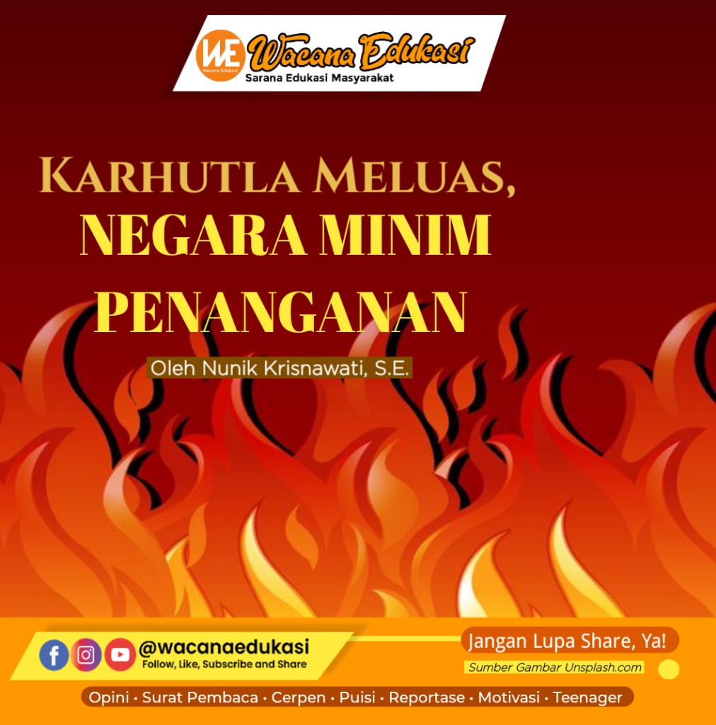 Wacana-edukasi.com OPINI– Kebakaran hutan dan lahan (karhutla) menjadi peristiwa rutin negeri ini setiap musim kemarau. Cuaca dan iklim kerap dijadikan faktor alasan meluasnya kebakaran hutan.