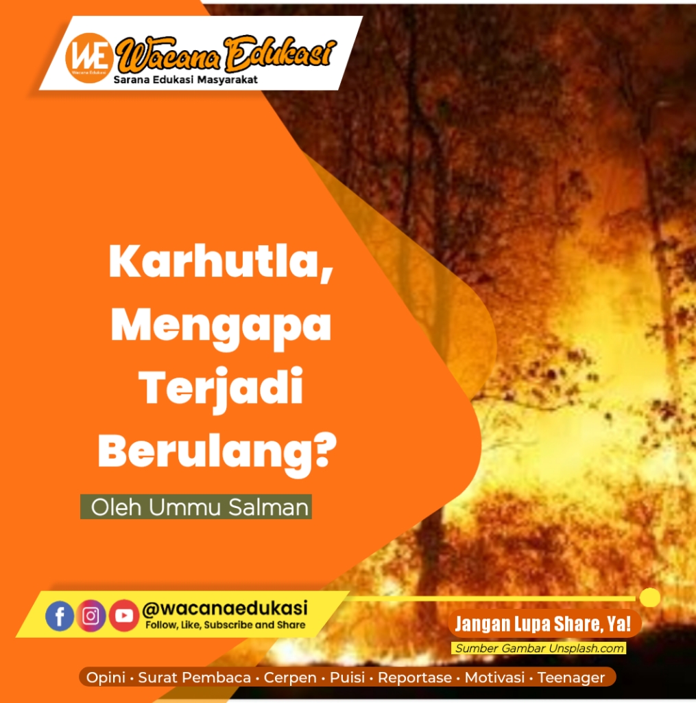 wacana-edukasi. Com, OPINI–Kebakaran lahan kembali terjadi. Kebakaran tersebut berpotensi membahayakan lahan dan perumahan warga, juga menimbulkan kabut asap sehingga sempat mengganggu mobilitas barang dan masyarakat, serta mengancam kesehatan rakyat.