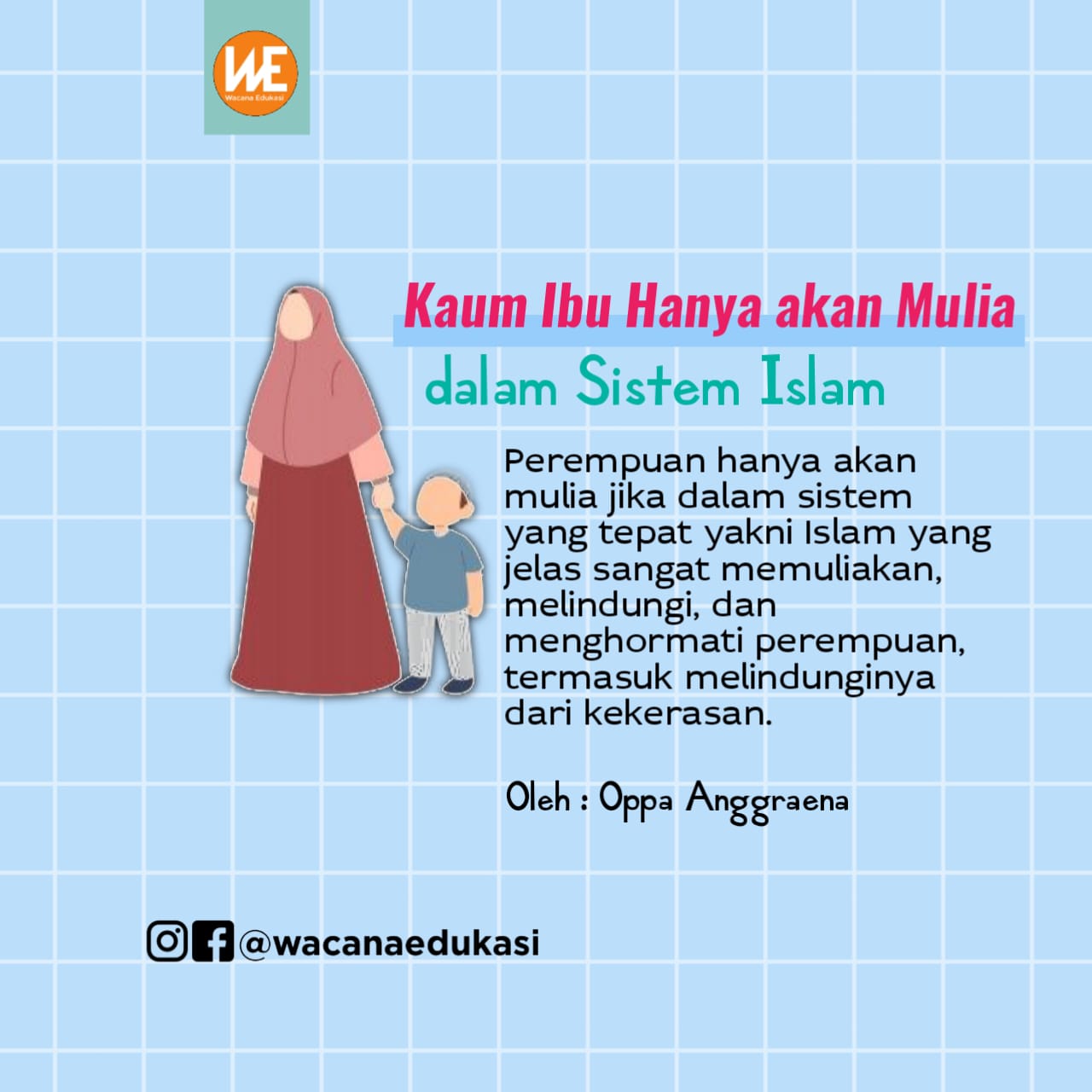 Padahal posisi perempuan dalam Islam sangatlah mulia bahkan terdapat satu surah dalam Al-Qur’an yang menceritakan tentang perempuan. Perempuan, jika dia seorang anak bisa membawa orang tuanya ke surga dan ketika menjadi ibu, surga ada di telapak kakinya. MasyaaAllah, perempuan hanya akan mulia jika berada dalam sistem yang tepat yakni Islam yang jelas sangat memuliakan, melindungi dan menghormati perempuan, termasuk melindunginya dari kekerasan.