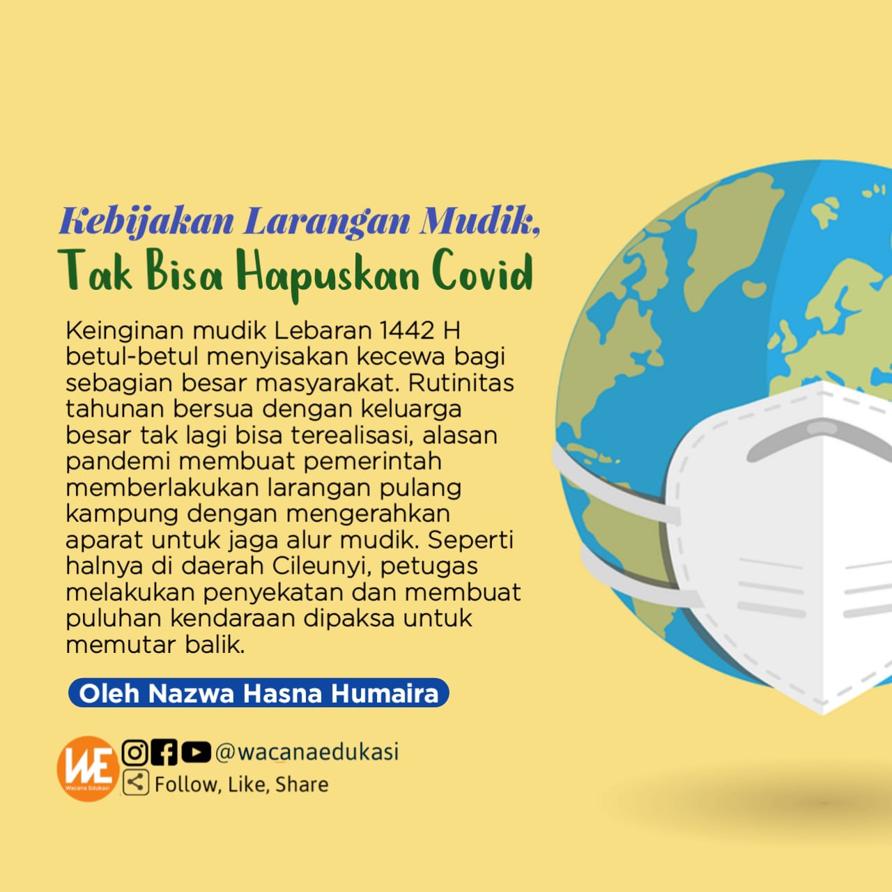 Dikarenakan Covid-19 masih menunjukkan kebahayaannya, semestinya negara menutup rapat akses masuk warga luar Indonesia, apa pun alasannya. Jika ini tetap dilakukan, apalah artinya melarang mudik, melarang berkumpul bila virus masih dibiarkan masuk bersama warga asing.