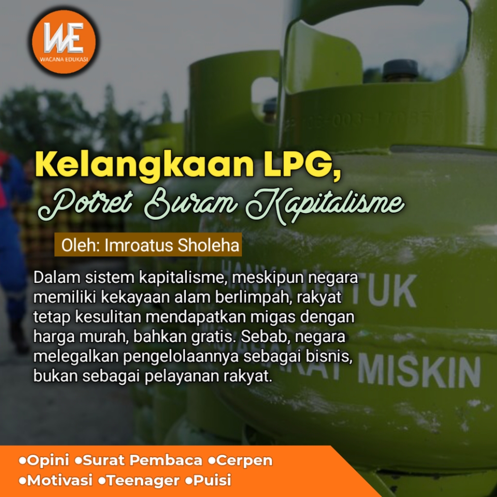 Perubahan sistem distribusi LPG 3 kg yang mengharuskan pengecer menjadi pangkalan resmi adalah konsekuensi dari sistem kapitalisme. Nyatanya, permasalahan utama kelangkaan LPG 3 kg di pasaran bukan sekadar soal distribusi, melainkan tata kelola sumber daya alam yang keliru.
