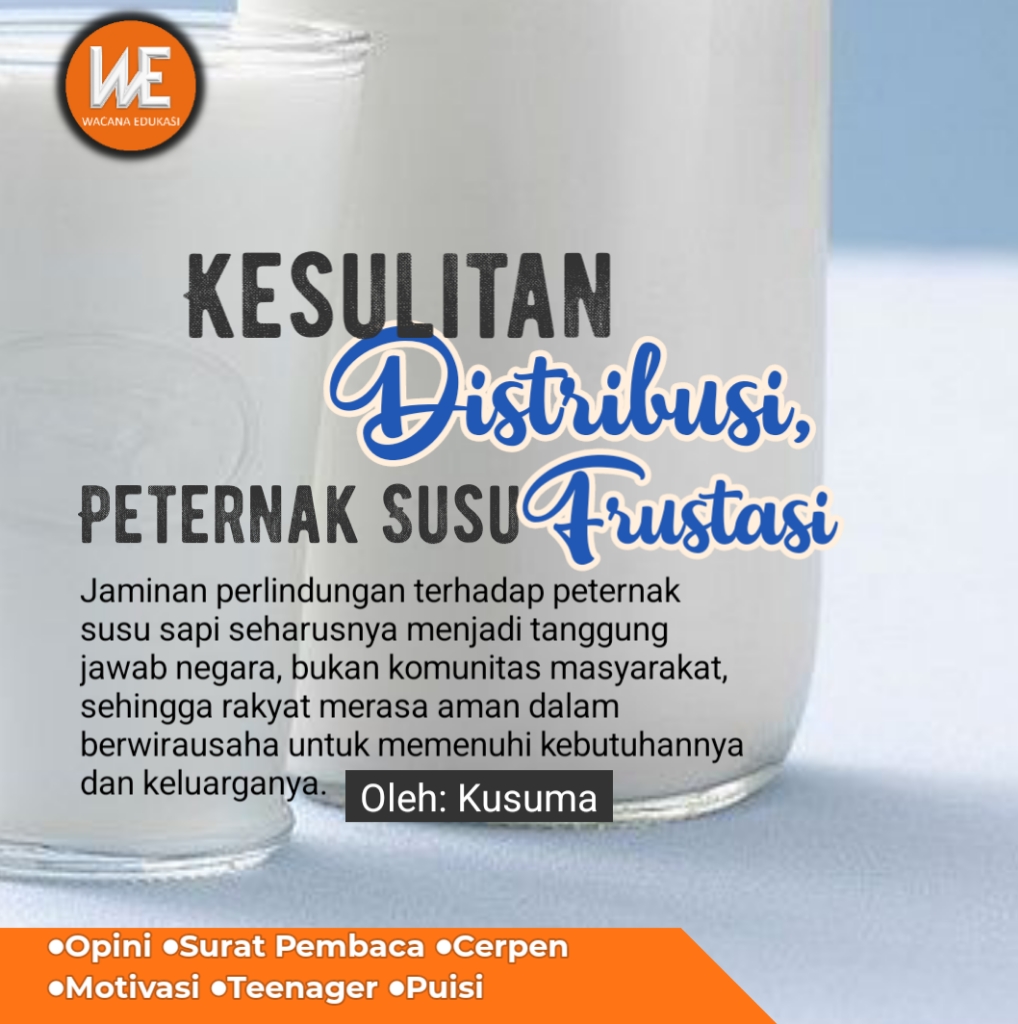 Wacana-edukasi.com, SURAT PEMBACA– Puluhan peternak sapi perah dan penghasil susu di kabupaten Boyolali, Jawa Tengah (Jateng) dalam beberapa waktu terakhir ini terpaksa membuang susu hasil panen mereka. Hal itu dipicu dibekukannya rekening pengepul yang biasa menyetorkan hasil susu peternak ke perusahaan susu.