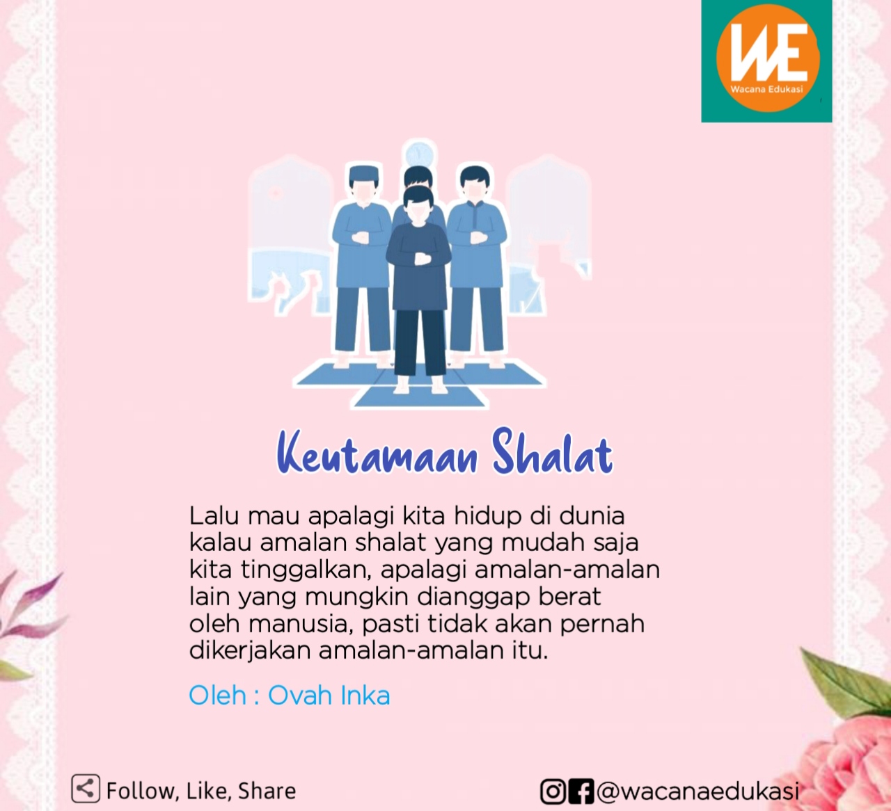 Ingat sahabat, shalat adalah tiangnya agama, jadi jika tiangnya saja tidak ditegakan, bagaimana dengan bangunannya yang sudah dibangun dengan kokoh, pasti bangunan itu juga akan ikut runtuh. Otomatis segala sesuatu yang sudah kita bangun tidak akan menjadi apa-apa. Maka dari itu sahabat, jangan pernah kita meninggalkan shalat, karena shalat adalah kewajiban bagi setiap muslim dan muslimah di seluruh dunia. Sebagaimana firman Allah Ta’ala yang artinya :