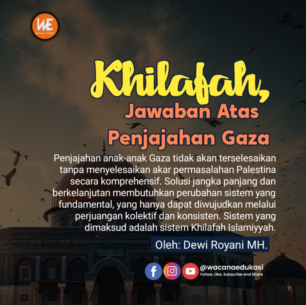 Penjajahan anak-anak Gaza tidak akan terselesaikan tanpa menyelesaikan akar permasalahan Palestina secara komprehensif. Solusi jangka panjang dan berkelanjutan membutuhkan perubahan sistem yang fundamental, yang hanya dapat diwujudkan melalui perjuangan kolektif dan konsisten. Sistem yang dimaksud adalah sistem Khilafah Islamiyyah. [WE/IK].