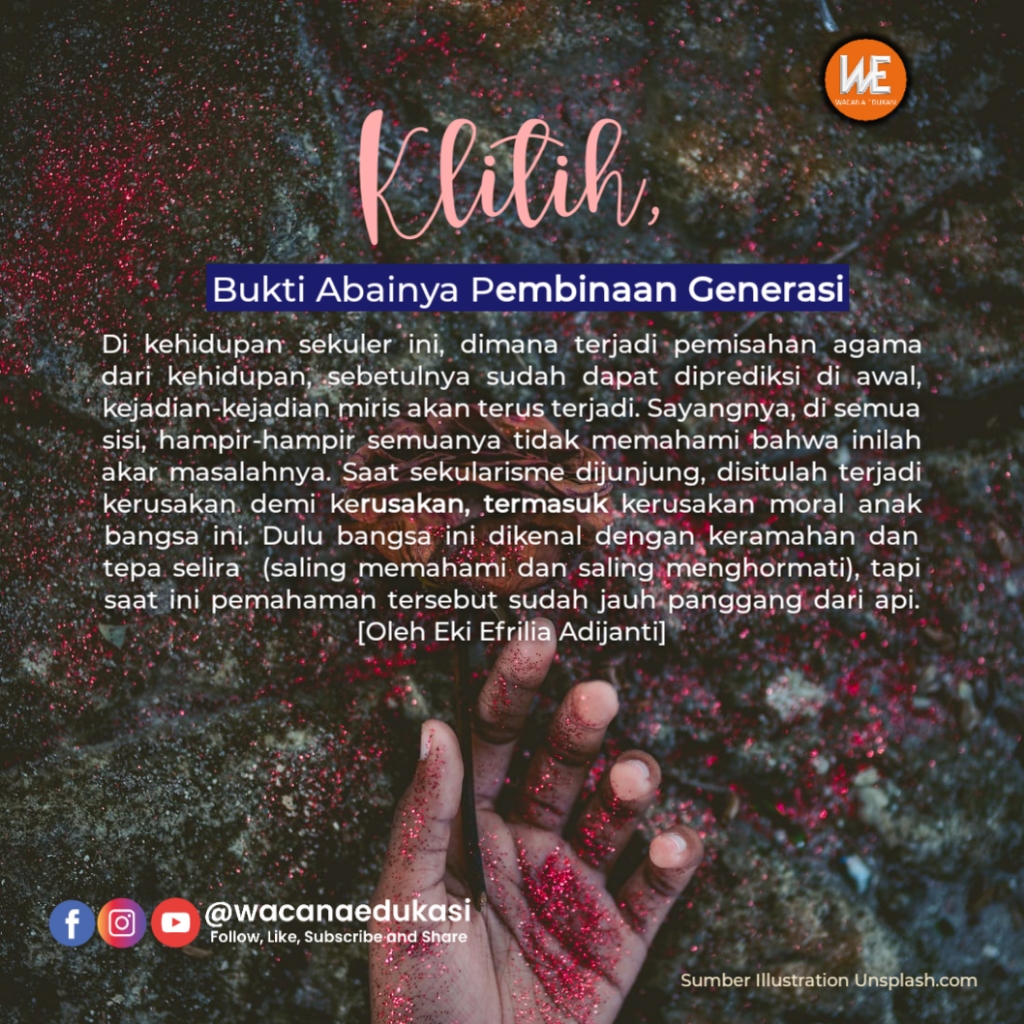 Sudah pasti ini merupakan keprihatinan bagi kita semua, bagaimana seharusnya para korban ini adalah pelanjut generasi, menerima ‘tongkat estafet’ perjuangan dari para pendahulu. Sayangnya, mereka meninggal sia-sia akibat kekejaman klitih.