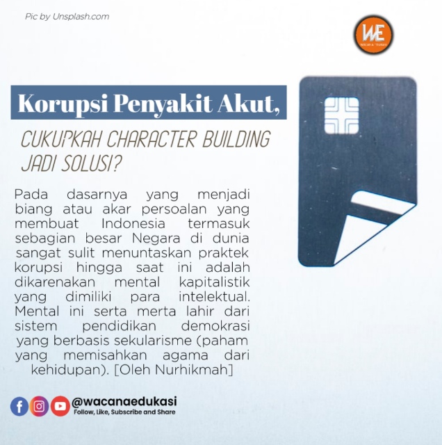 Pada dasarnya yang menjadi biang atau akar persoalan yang membuat Indonesia termasuk sebagian besar Negara di dunia sangat sulit menuntaskan praktek korupsi hingga saat ini adalah dikarenakan mental kapitalistik yang dimiliki para intelektual. Mental ini serta merta lahir dari sistem pendidikan demokrasi yang berbasis sekularisme (paham yang memisahkan agama dari kehidupan).