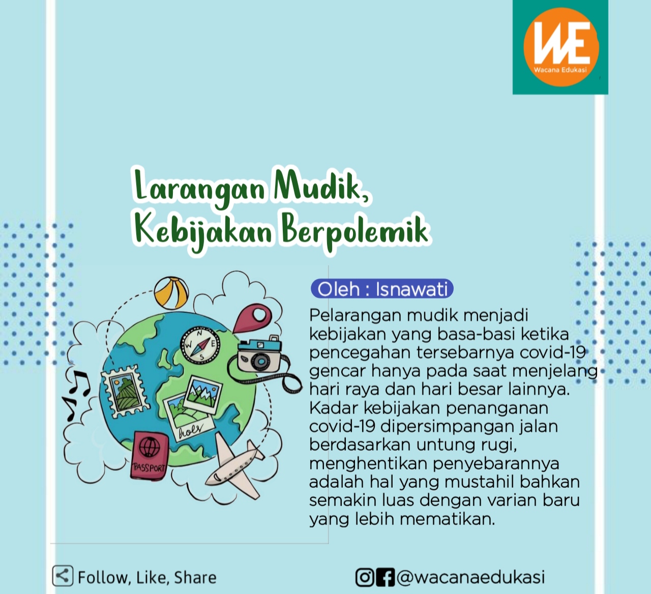 Pelarangan mudik menjadi kebijakan yang basa-basi ketika pencegahan tersebarnya covid-19 gencar hanya pada saat menjelang hari raya dan hari besar lainnya. Kadar kebijakan penanganan covid-19 dipersimpangan jalan berdasarkan untung rugi, menghentikan penyebarannya adalah hal yang mustahil bahkan semakin luas dengan varian baru yang lebih mematikan.