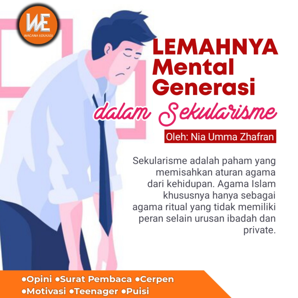 Sekulerisme adalah paham yang memisahkan aturan agama dari kehidupan. Agama Islam khususnya hanya sebagai agama ritual yang tidak memiliki peran selain urusan ibadah dan private. Akibatnya sistem pendidikan yang diberlakukan berasas sekuler yang mengabaikan pembentukan kepribadian Islam. Generasi masyarakatnya sekuler yang jauh dari budaya amar makruf nahi mungkar dengan standar halal haram.