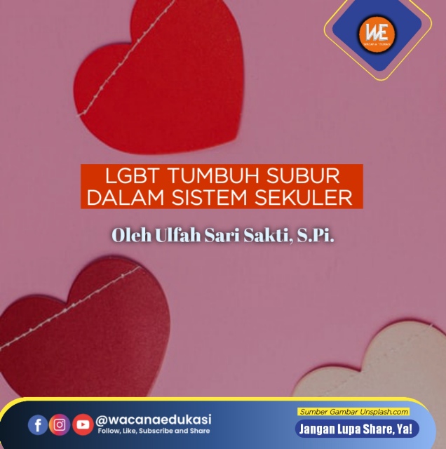 wacana-edukasi.com, SURAT PEMBACA– Lesbian, Gay, Biseksual dan Transgender (LGBT) semakin tumbuh subur saat ini, karena sistem yang digunakan yaitu sistem sekuler (memisahkan agama dari kehidupan). Selain sanksi hukum yang tidak berefek jera, LGBT juga didukung korporasi internasional atas nama hak asasi manusia (HAM). Bagi masyarakat yang peduli peradaban, tentunya hal ini merupakan perjuangan penyadaran umat yang harus fokus dilakukan.