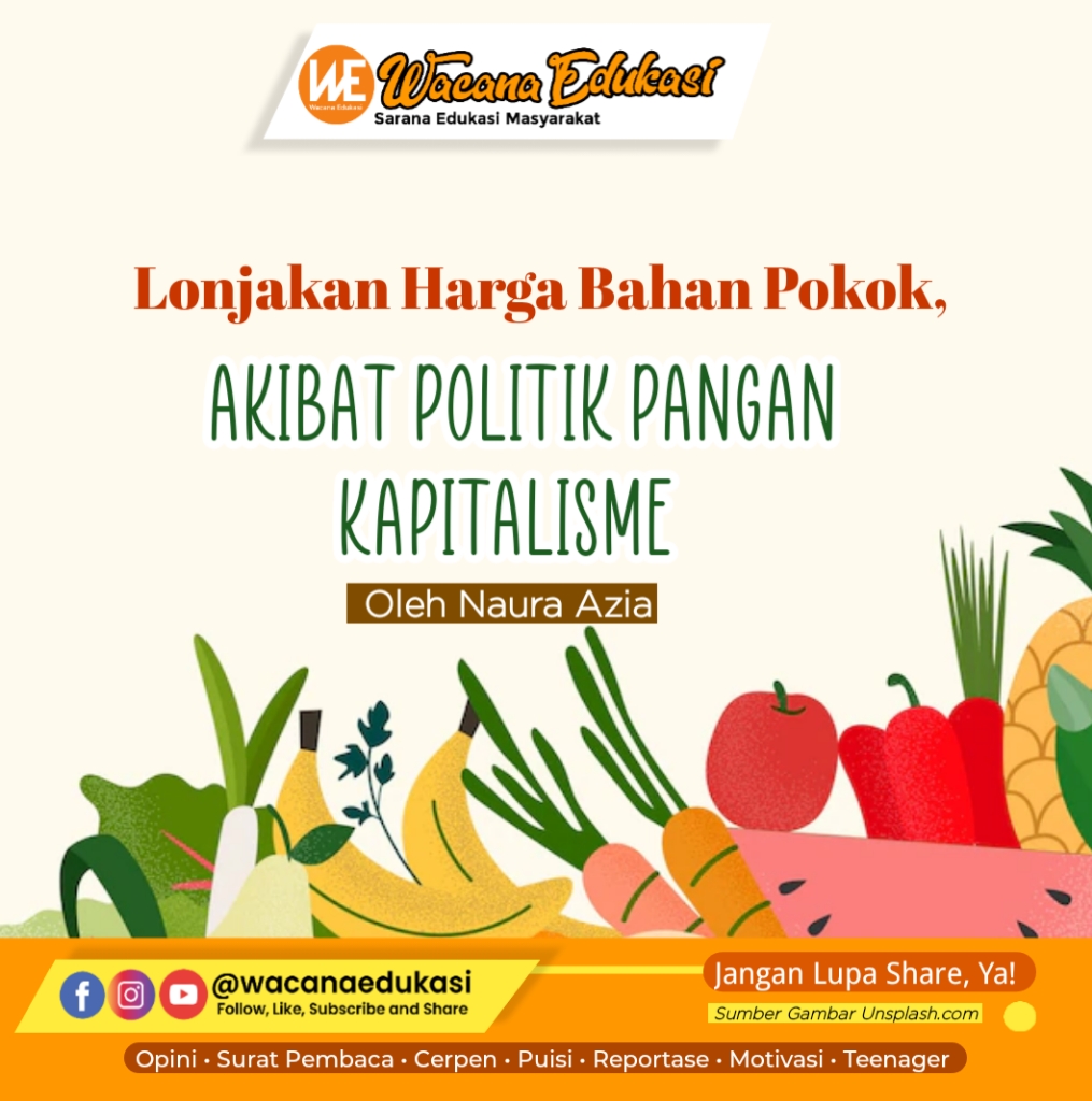 Secara ekonomi, ketimpangan ekonomi yang sangat tidak wajar disebabkan oleh praktik sistem ekonomi kapitalismenya. Dalam mengatur pangan yang mampu mewujudkan pemenuhan pangan bagi seluruh rakyat, termasuk di dalamnya jaminan stabilitas harga hanya ada dalam pandangan Islam. Politik ekonomi Islam pun memiliki tujuan untuk menjamin pemenuhan kebutuhan pokok bagi seluruh masyarakat. Begitu pula dengan pelaksanaannya wajib berada di pundak negara (Khilafah).