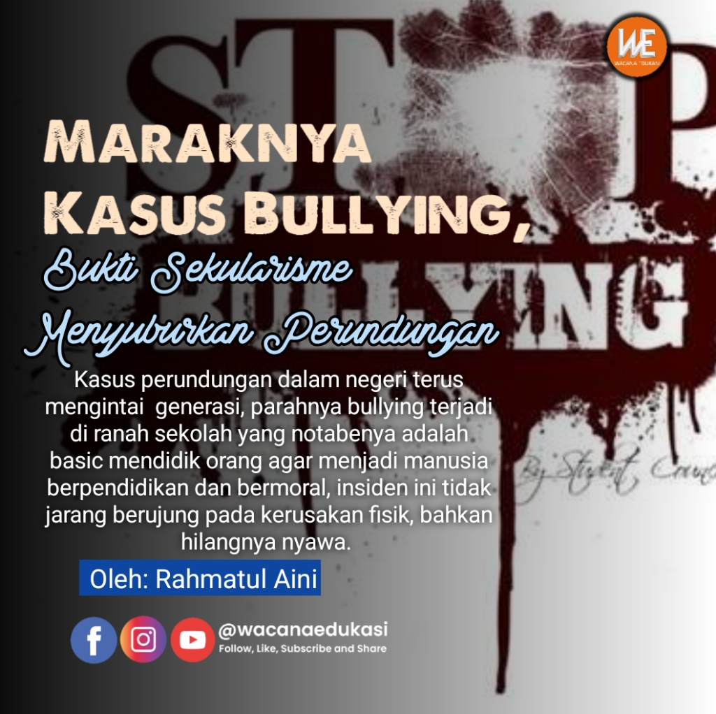 Sistem sekuler liberal telah menyuburkan aktivitas perundungan, yang tertancap kuat diberbagai sektor, pemahanan kehidupan sekuler yang tidak diatur oleh syariat Islam menyebabkan para pelaku hanya tunduk pada hawa nafsu mereka, bebas berbuat semaunya tanpa ada rambu syariat atau nilai agama.