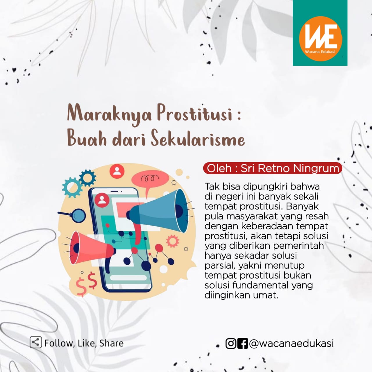 Wacana Edukasi adalah sarana edukasi masyarakat. Silakan kirimkan tulisan anda ke media kami. Wacana Edukasi akan melakukan seleksi dan menayangkan berbagai naskah dari Anda. Tulisan yang dikirim bisa berupa Opini, SP, Puisi, Cerpen, Sejarah Islam, Tsaqofah Islam, Fiqih, Story Telling, Olah raga, Kesehatan, Makanan, ataupun tulisan lainnya. Tulisan tidak boleh berisi hoaks, mengandung SARA, ujaran kebencian, dan bertentangan dengan syariat Islam. Tulisan yang dikirim sepenuhnya menjadi tanggungjawab penulis.