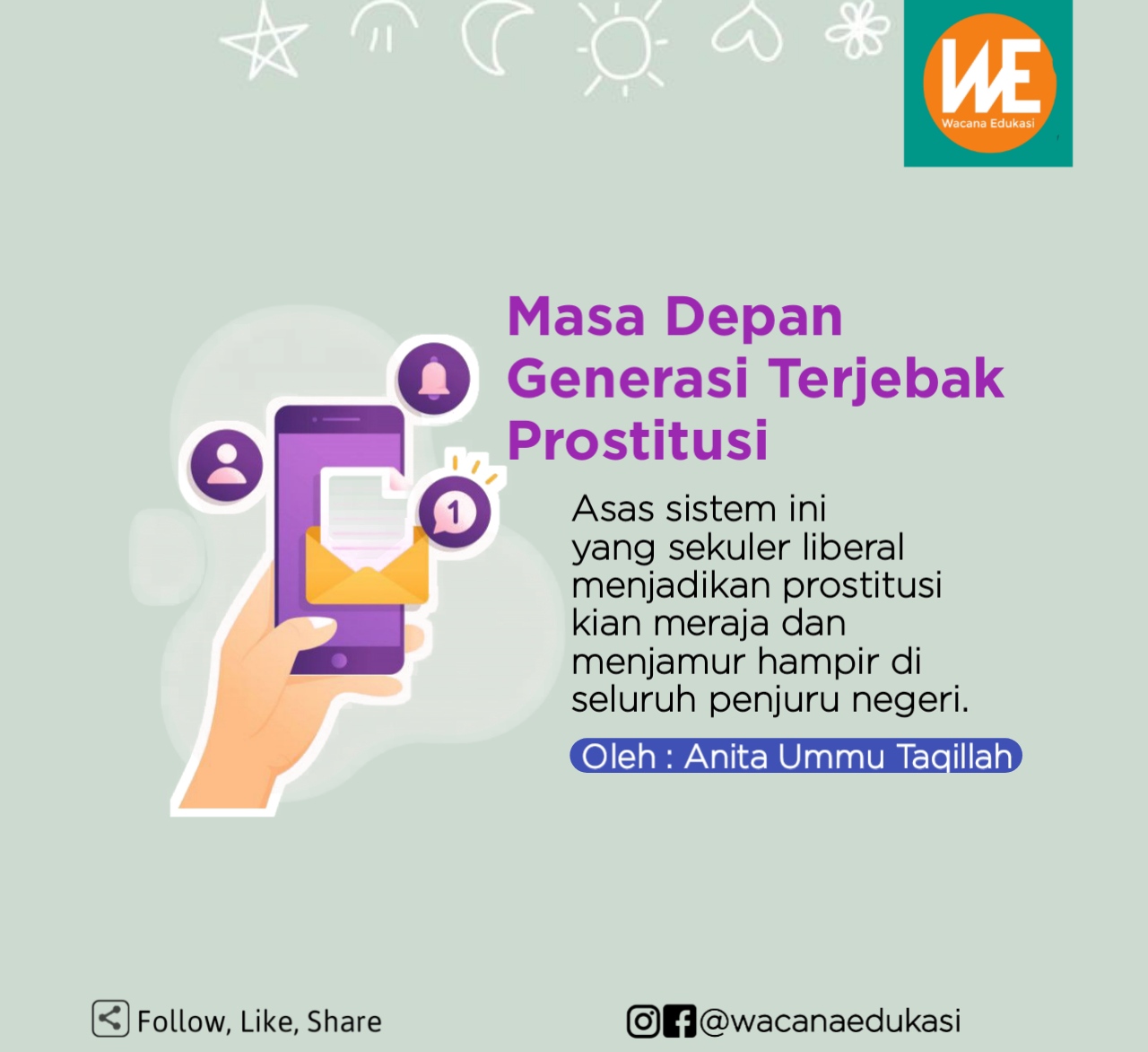 Duka lara kian meraja anak bangsa. Derita ekonomi, ancaman kejahatan, hingga pupusnya harap masa depan anak terus melanda. Demi pundi-pundi mereka rela meninggalkan pendidikan. Bahkan, jebakan prostitusi nyata-nyata menghampiri. Tak ayal, jalur online pun dijabani. Mau jadi apa masa depan generasi nanti?