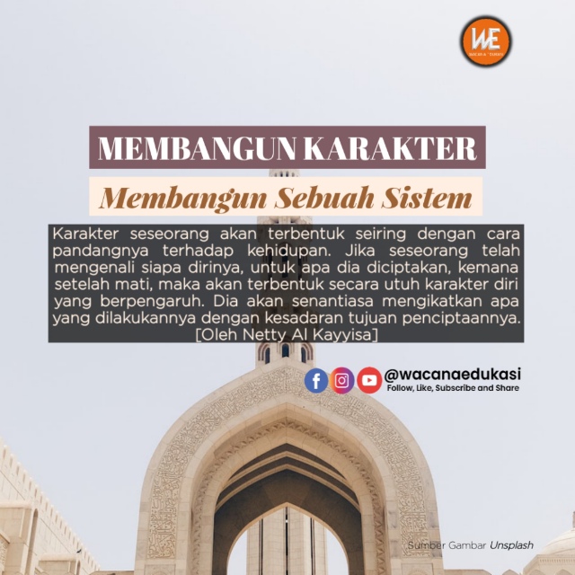 Inilah karakter kuat yang diharapkan dalam Islam. Memandang religius tidak semata dengan ibadah mahdah saja tetapi dengan seluruh ketundukan kepada Allah. Membangun kemandirian dan kerja sama atas dasar keimanan. Membangun integritas dengan stadart yang benar. Mengisi kehidupan dengan taat pada aturanNya. Membentuk karakter sekaligus membangun sebuah peradaban mulia. Membangun negeri yang baldatun thoyibatun wa rabbun ghafir yang sesungguhnya.