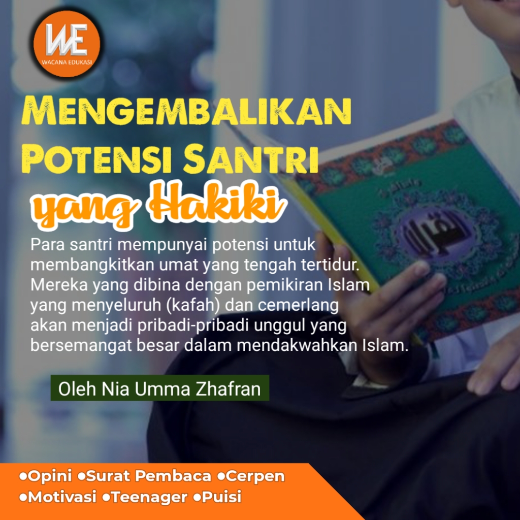 Para santri mempunyai potensi untuk membangkitkan umat yang tengah tertidur. Mereka yang dibina dengan pemikiran Islam yang menyeluruh (kafah) dan cemerlang akan menjadi pribadi-pribadi unggul yang bersemangat besar dalam mendakwahkan Islam. Belenggu penjajahan pemikiran baik secara moderat maupun liberal yang sejatinya masih mencengkeram negeri, perlulah disadari.