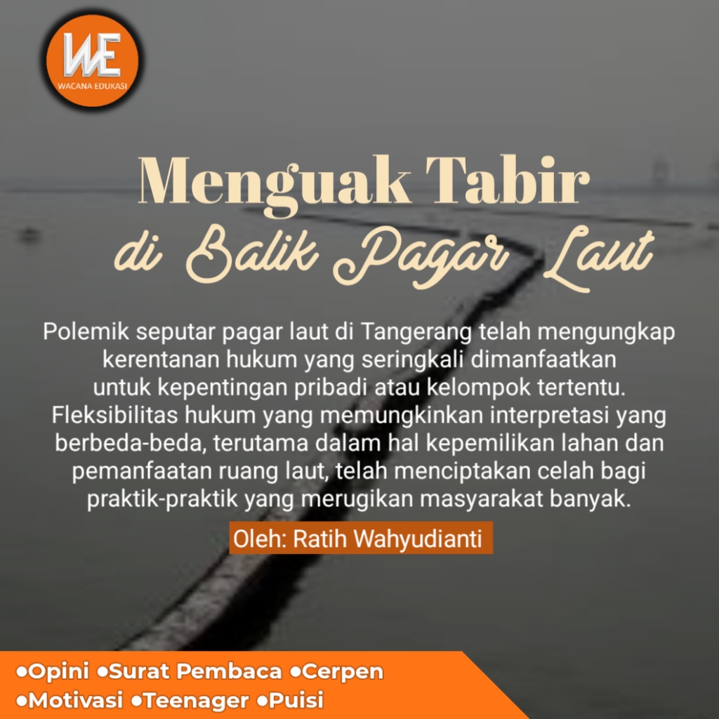 Polemik seputar pagar laut di Tangerang telah mengungkap kerentanan hukum yang seringkali dimanfaatkan untuk kepentingan pribadi atau kelompok tertentu. Fleksibilitas hukum yang memungkinkan interpretasi yang berbeda-beda, terutama dalam hal kepemilikan lahan dan pemanfaatan ruang laut, telah menciptakan celah bagi praktik-praktik yang merugikan masyarakat banyak. Asas kepentingan yang menjadi landasan pembuatan aturan seringkali disalahgunakan, sehingga hukum menjadi instrumen yang dapat dimanipulasi untuk tujuan-tujuan tertentu. Dalam kasus pagar laut ini, terlihat jelas bagaimana aturan yang seharusnya melindungi kepentingan publik, justru dapat dimanfaatkan untuk kepentingan bisnis kelompok tertentu. Hal ini menunjukkan betapa pentingnya adanya pengawasan yang ketat terhadap pelaksanaan hukum dan penegakan aturan yang adil bagi semua pihak.