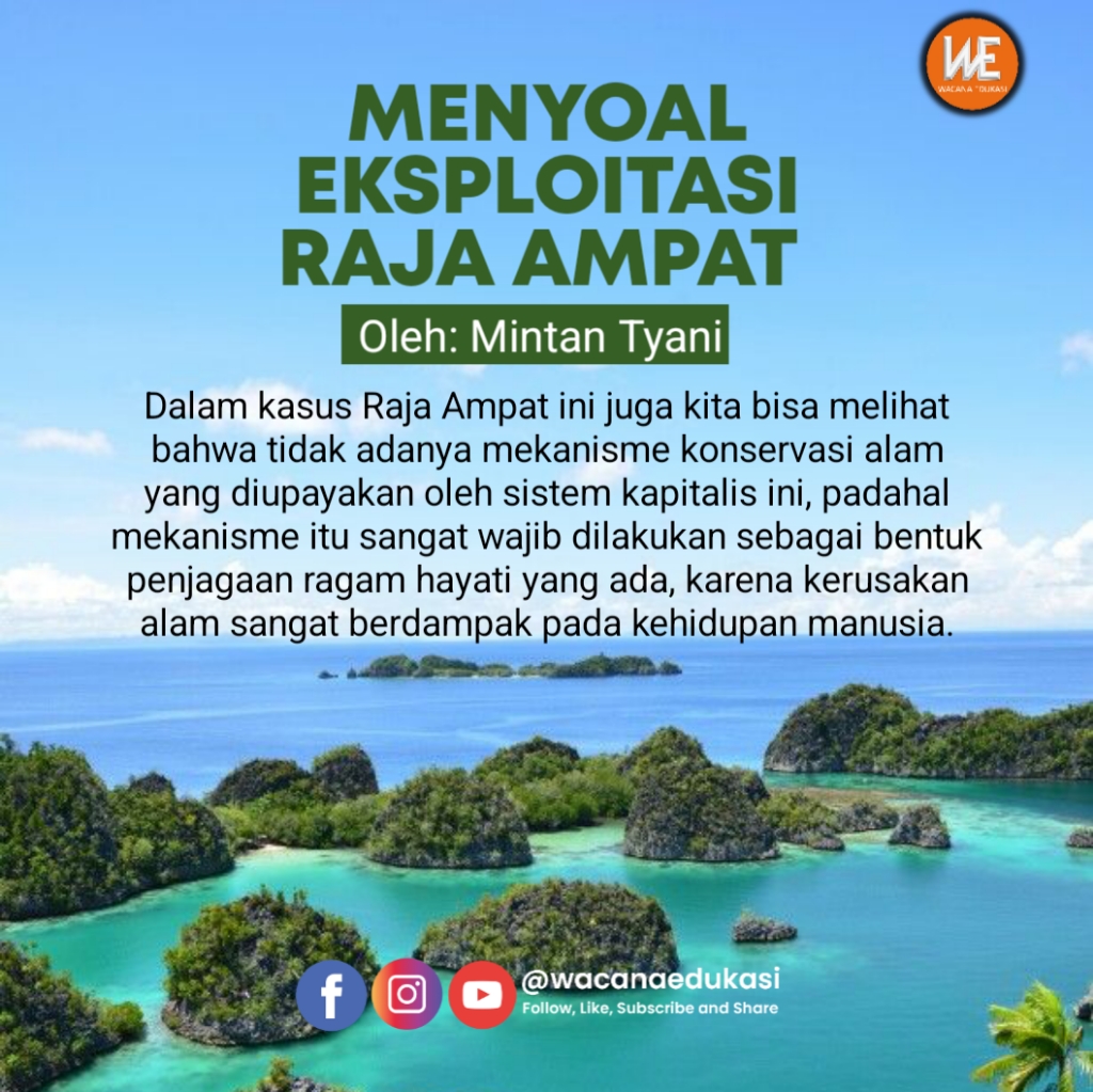 Dalam kasus Raja Ampat ini juga kita bisa melihat bahwa tidak adanya mekanisme konservasi alam yang diupayakan oleh sistem kapitalis ini, padahal mekanisme itu sangat wajib dilakukan sebagai bentuk penjagaan ragam hayati yang ada, karena kerusakan alam sangat berdampak pada kehidupan manusia.