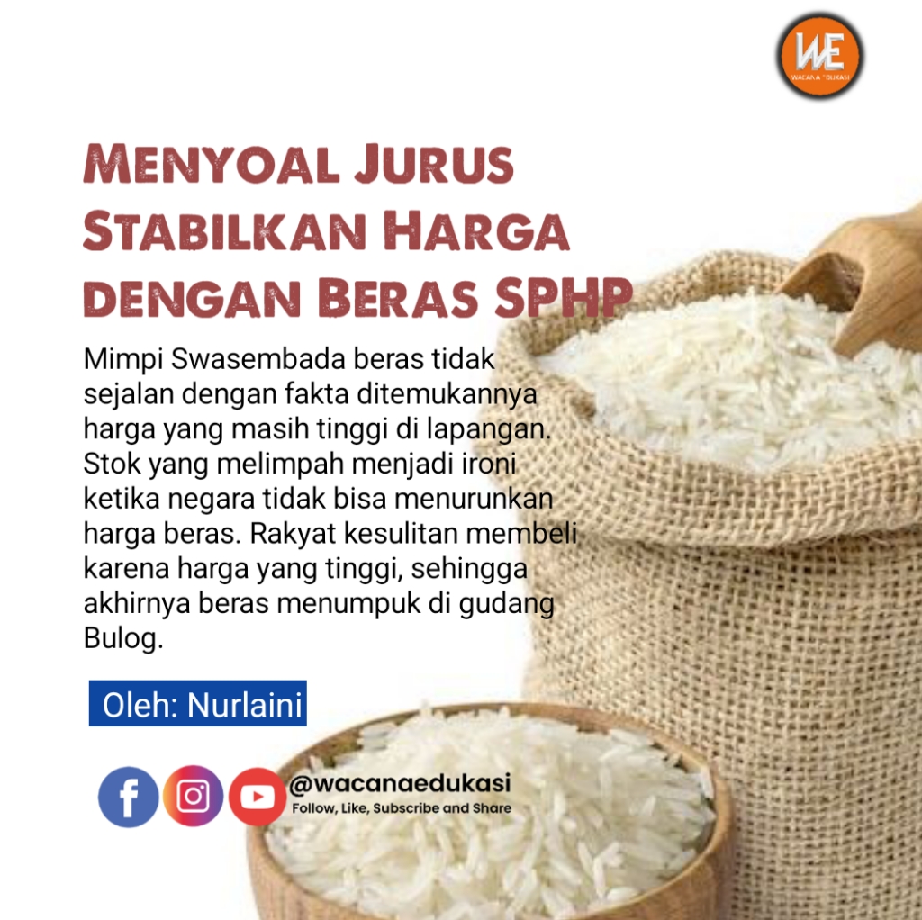 Guna mengatasi masalah harga ini, pemerintah menyalurkan SPHP (Stabilitas Pasokan Harga Pangan) untuk menurunkan harga beras dan ternyata upaya ini mengalami kegagalan. Jaminan pangan yang dijanjikan masih sebatas PHP atau Pemberi Harapan Palsu. Faktanya, masyarakat harus mengeluarkan dana lebih demi bisa membeli beras di kala ekonomi yang semakin keras. Bukankah seharusnya negara memberikan solusi yang lebih mumpuni dibandingan sekadar beras SPHP ini?