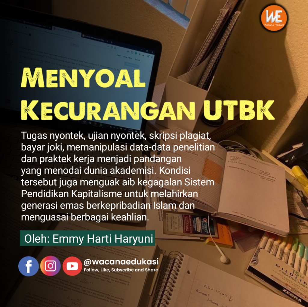 Kondisi tersebut juga menguak aib kegagalan Sistem Pendidikan Kapitalisme untuk melahirkan generasi emas berkepribadian Islam dan menguasai berbagai keahlian. Menelurkan generasi yang ketika menjalani ujian kelulusan, sangat berpotensi untuk berbuat curang lagi.