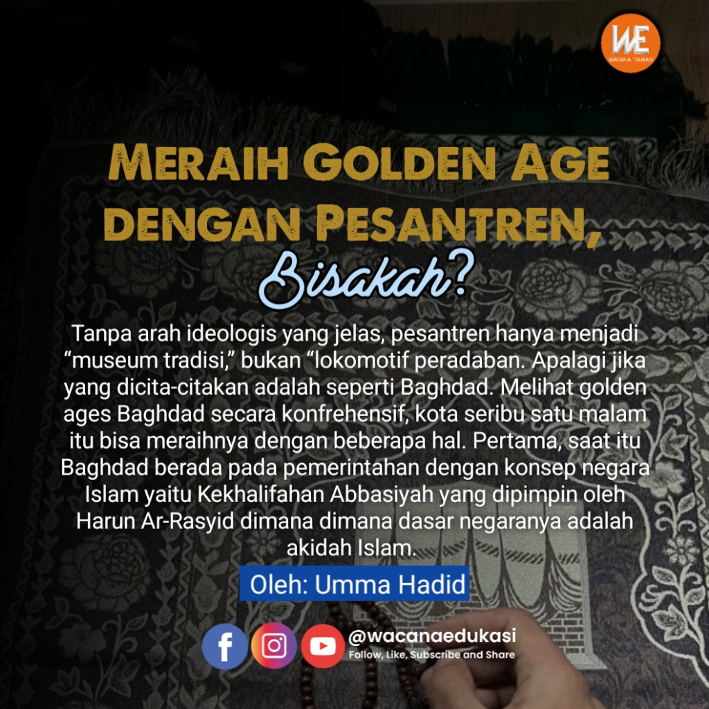 Tanpa arah ideologis yang jelas, pesantren hanya menjadi “museum tradisi,” bukan “lokomotif peradaban. Apalagi jika yang dicita-citakan adalah seperti Baghdad.
