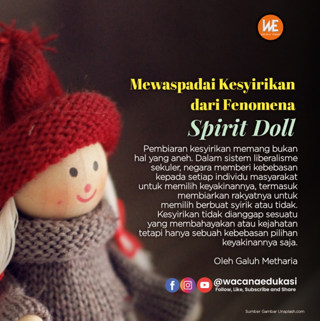 wacana-edukasi.com– Belakangan ini sedang viral sejumlah publik figur tanah air yang mengadopsi boneka arwah (spirit doll). Oleh pemiliknya, boneka tersebut dipercaya bisa mendatangkan keberuntungan. Mereka juga memperlakukan boneka tersebut layaknya seorang anak seperti diberi nama, dibelikan baju, hingga dirawat dan diajak jalan-jalan. Bahkan salah satu artis ternama yang mengadosi boneka ini juga mengatakan boneka ini berhak untuk sekolah, tumbuh, hingga menikah dan berkeluarga. Tentu hal ini menuai kontradiktif dari berbagai kalangan.