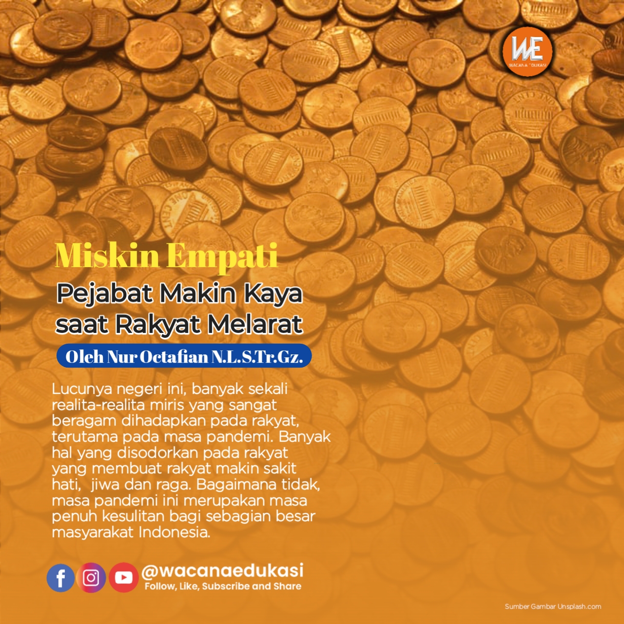 wacana-edukasi.com– Lucunya negeri ini, banyak sekali realita-realita miris yang sangat beragam dihadapkan pada rakyat, terutama pada masa pandemi. Banyak hal yang disodorkan pada rakyat yang membuat rakyat makin sakit hati, jiwa dan raga. Bagaimana tidak, masa pandemi ini merupakan masa penuh kesulitan bagi sebagian besar masyarakat Indonesia. Banyak dari mereka kehilangan pekerjaan dan makin sulit memenuhi kebutuhan sehari-hari, bukan hanya itu banyak dari masyarakat yang harus kehilangan keluarganya. Bahkan negeri ini sempat megalami resesi ekonomi karena penurunan ekonomi yang sangat drastis.