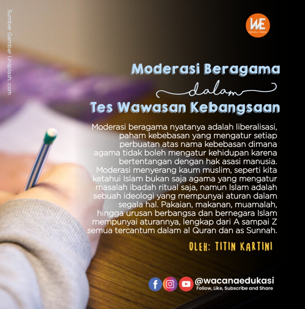 wacana-edukasi.com– Moderasi beragama sedang hangat-hangatnya digaungkan, demi terlaksananya agama yang moderat terkhusus Islam. Berbagai macam cara dilakukan mulai dari opini publik hingga tes wawasan sebuah lembaga negara dimana pegawainya akan diangkat menjadi pegawai negeri atau ASN.