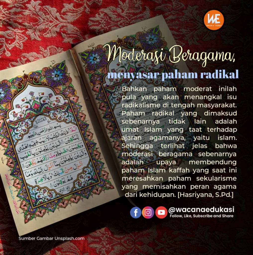 Bahkan paham moderat inilah pula yang akan menangkal isu radikalisme di tengah masyarakat. Paham radikal yang dimaksud sebenarnya tidak lain adalah umat Islam yang taat terhadap ajaran agamanya, yaitu islam. Sehingga terlihat jelas bahwa moderasi beragama sebenarnya adalah upaya membendung paham Islam kaffah yang saat ini meresahkan paham sekularisme yang memisahkan peran agama dari kehidupan.