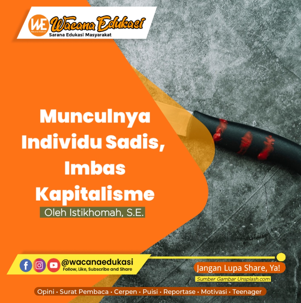 Sangat miris banyak kasus sadis dengan berbagai penyebab yang mengakibatkan tindak pembunuhan. Hal ini menunjukkan lemahnya pengelolaan emosi dan daya tahan dalam menghadapi beratnya masalah kehidupan. Inilah gambaran buram sistem kehidupan ala Kapitalis sekuler yang jauh dari keimanan.