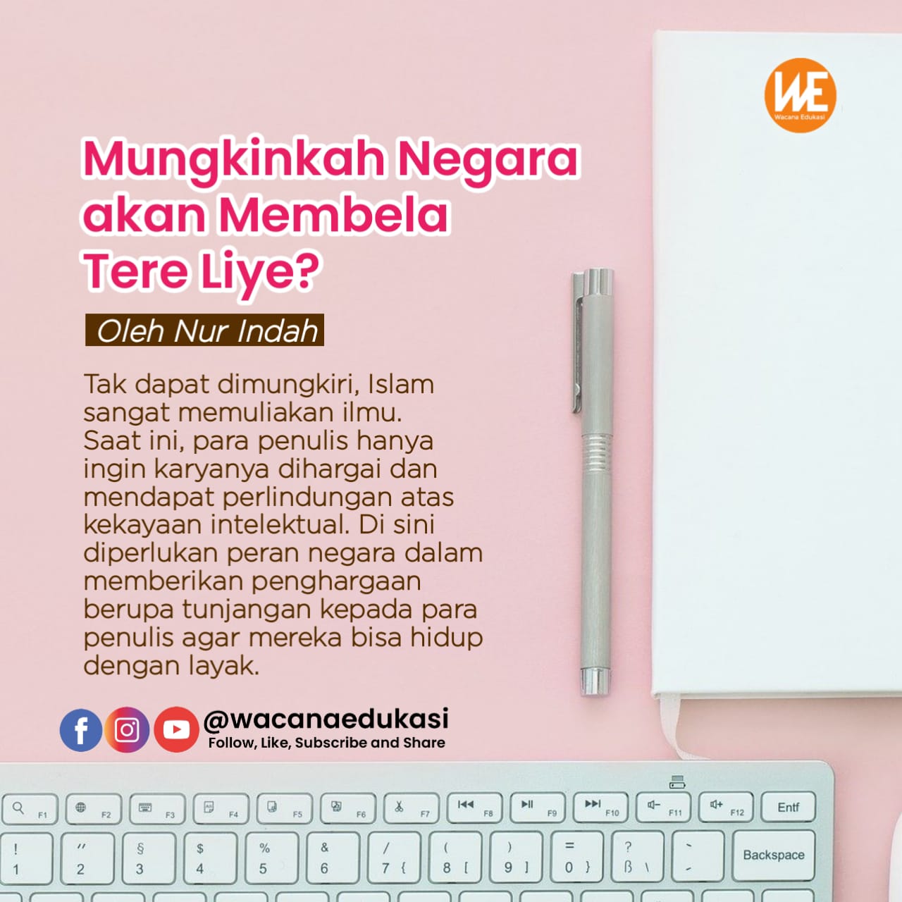 Tak dapat dimungkiri, Islam sangat memuliakan ilmu. Saat ini, para penulis hanya ingin karyanya dihargai dan mendapat perlindungan atas kekayaan intelektual. Di sini diperlukan peran negara dalam memberikan penghargaan berupa tunjangan kepada para penulis agar mereka bisa hidup dengan layak.