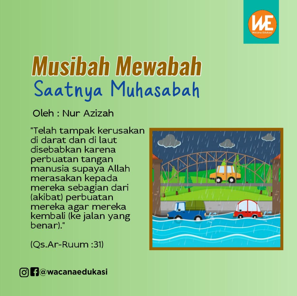 Wacana-edukasi.com –Memasuki tahun baru 2021 yang belum berlangsung cukup lama, tampaknya beragam musibah sudah tak sabar untuk menyapa. Belum lepas kehidupan masyarakat yang jadi serba terbatas akibat pandemi covid-19 yang tak sedikit merenggut korban jiwa, kini sebagian masyarakat harus menelan kembali pilunya ujian kehidupan. Mulai dari peristiwa longsor di Sumedang, gempa di Sulawesi Barat, hingga banjir di Kalimantan Selatan dengan ketinggian air mencapai 2-3 meter yang merendam ribuan rumah warga juga sederetan peristiwa lainnya.