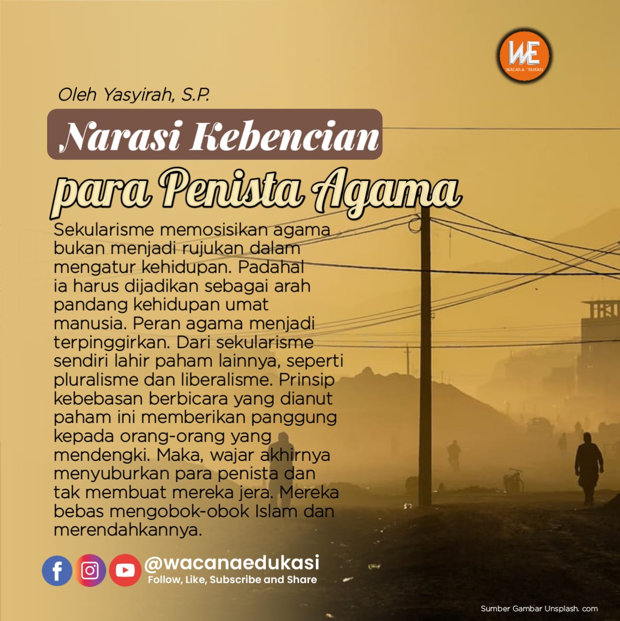 Wacana Edukasi adalah sarana edukasi masyarakat. Silakan kirimkan tulisan anda ke media kami. Wacana Edukasi akan melakukan seleksi dan menayangkan berbagai naskah dari Anda. Tulisan yang dikirim bisa berupa Opini, SP, Puisi, Cerpen, Sejarah Islam, Tsaqofah Islam, Fiqih, Story Telling, Olah raga, Kesehatan, Makanan, ataupun tulisan lainnya. Tulisan tidak boleh berisi hoaks, mengandung SARA, ujaran kebencian, dan bertentangan dengan syariat Islam. Tulisan yang dikirim sepenuhnya menjadi tanggungjawab penulis.