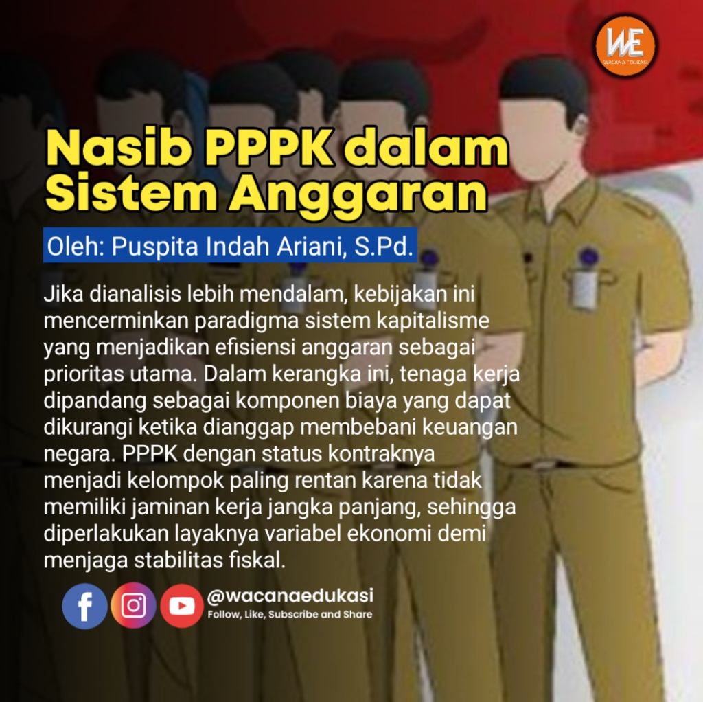 Jika dianalisis lebih mendalam, kebijakan ini mencerminkan paradigma sistem kapitalisme yang menjadikan efisiensi anggaran sebagai prioritas utama. Dalam kerangka ini, tenaga kerja dipandang sebagai komponen biaya yang dapat dikurangi ketika dianggap membebani keuangan negara. PPPK dengan status kontraknya menjadi kelompok paling rentan karena tidak memiliki jaminan kerja jangka panjang, sehingga diperlakukan layaknya variabel ekonomi demi menjaga stabilitas fiskal. Dengan demikian, persoalan ini bukan sekadar teknis anggaran, tetapi merupakan dampak dari cara pandang sistem yang menempatkan manusia sebagai objek efisiensi.