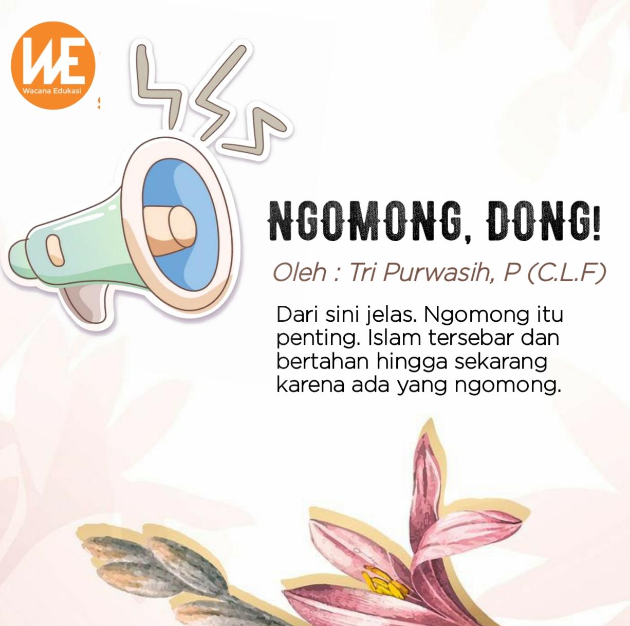 Dari sini jelas, ngomong itu penting. Islam tersebar dan bertahan hingga sekarang juga karena ada yang ngomong. Jangan karena sungkan, kasihan atau alasan-alasan lain kita jadi gak mau ngomong. Pada akhirnya anda akan bernasib sama dengan saya sewaktu belanja di pasar. Sudah lama antri tapi karena gak ngomong, jadi keduluan sama yang lain. Gak mau, kan?