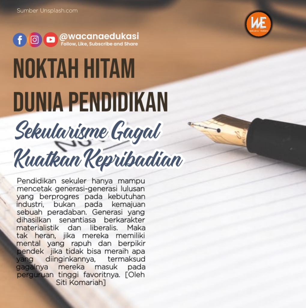 Pendidikan sekuler hanya mampu mencetak generasi-generasi lulusan yang berprogres pada kebutuhan industri, bukan pada kemajuan sebuah peradaban. Generasi yang dihasilkan senantiasa berkarakter materialistik dan liberalis. Maka tak heran, jika mereka memiliki mental yang rapuh dan berpikir pendek jika tidak bisa meraih apa yang diinginkannya, termaksud gagalnya mereka masuk pada perguruan tinggi favoritnya.
