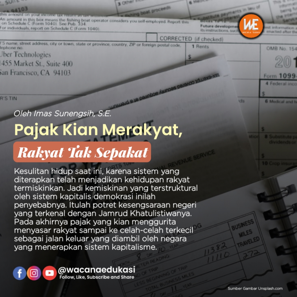 Kesulitan hidup saat ini, karena memang sistem yang diterapkan telah menjadikan kehidupan rakyat termiskinkan. Jadi kemiskinan yang terstruktural oleh sistem kapitalis demokrasi inilah penyebabnya dan itulah potret kesengsaraan negeri yang terkenal dengan Jamrud Khatulistiwa nya. Pada akhirnya pajak yang kian menggurita menyasar rakyat sampai ke celah-celah terkecil sebagai jalan keluar yang diambil oleh negara yang menerapkan sistem kapitalisme.