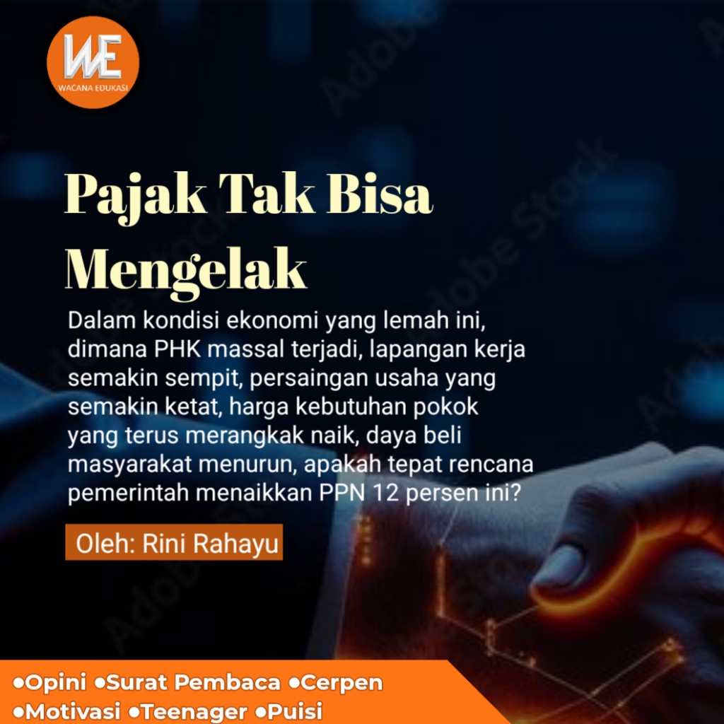 Dalam kondisi ekonomi yang lemah ini, dimana PHK massal terjadi, lapangan kerja semakin sempit, persaingan usaha yang semakin ketat, harga kebutuhan pokok yang terus merangkak naik, daya beli masyarakat menurun, apakah tepat rencana pemerintah menaikkan PPN 12 persen ini? Karena jelas akan membuat rakyat semakin sulit. Bahkan tidak hanya PPN, pajak membangun rumah sendiri pun bakal naik sebesar 2,4 persen. Nampaknya rakyat akan semakin terjepit oleh pajak pajak dan pajak. Namun apa daya rakyat tidak bisa mengelak.