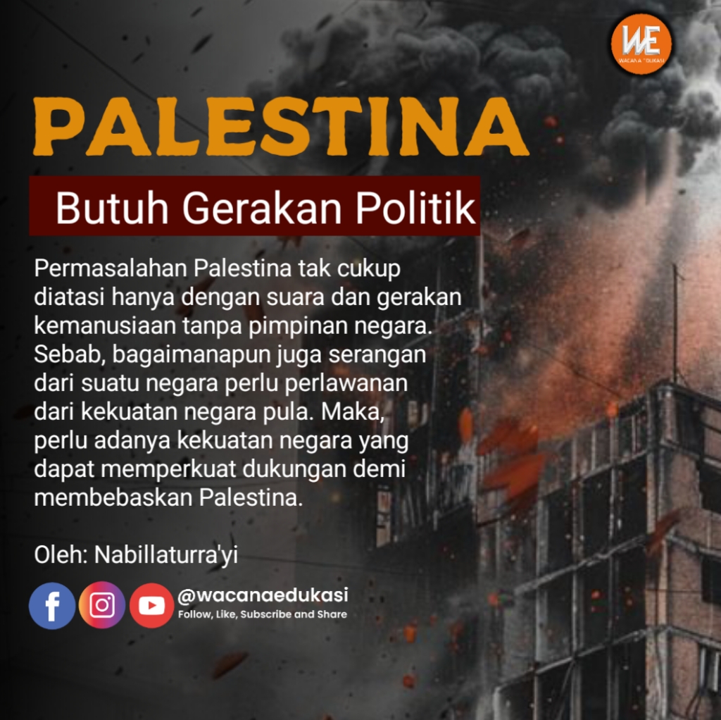 Permasalahan palestina tak cukup diatasi hanya dengan suara dan gerakan kemanusiaan tanpa pimpinan negara. Sebab bagaimanapun juga serangan dari suatu negara perlu perlawanan dari kekuatan negara pula. Maka, perlu adanya kekuatan negara yang dapat memperkuat dukungan demi membebasan palestina.