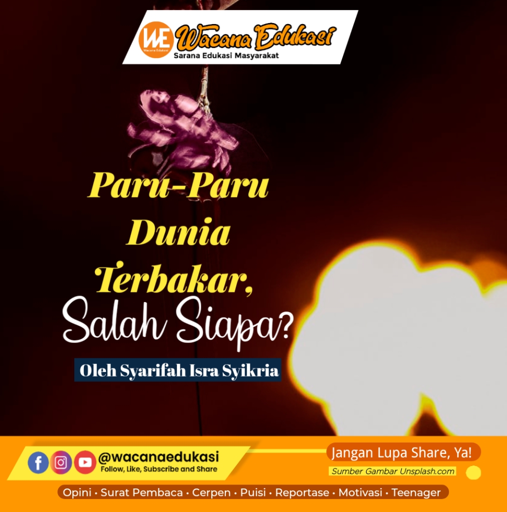 wacana-edukasi.com, SURAT PEMBACA– Hutan adalah area yang dipenuhi oleh vegetasi yang lebat, berfungsi sebagai paru-paru dunia karena menghasilkan oksigen untuk manusia. Namun, keadaan hutan saat ini sangatlah memprihatinkan, karena banyak lahan hutan yang terbakar. Berdasarkan data Kementerian Lingkungan Hidup dan Kehutanan (KLHK) selama periode Januari-Juli 2023 luas kebakaran hutan dan lahan di Indonesia sudah mencapai 90.405 hektare (ha).