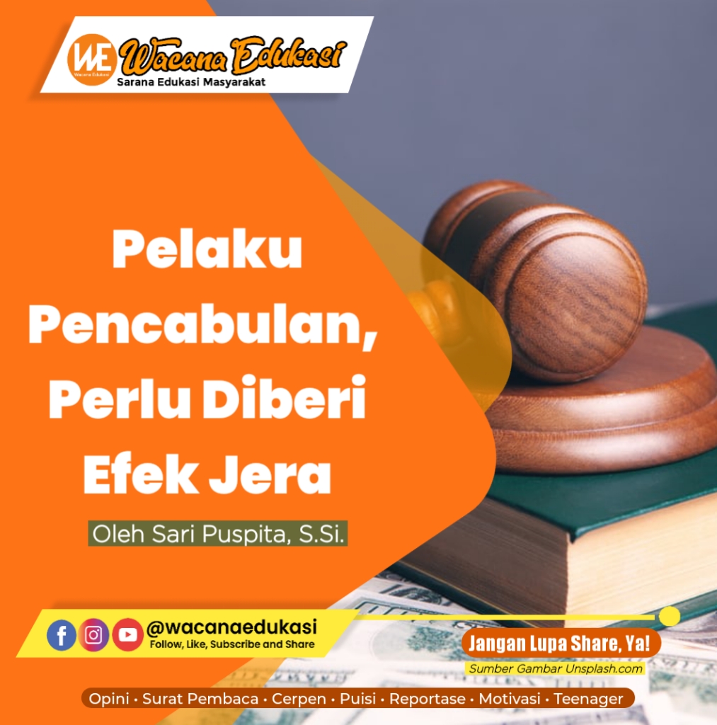 wacana-edukasi.com, SURAT PEMBACA– Empat orang pria asal Kabupaten Bengkayang, Kalimantan Barat (Kalbar) ditangkap polisi atas dugaan pencabulan terhadap remaja putri usia 16 tahun. Peristiwa pencabulan terjadi setelah korban bersama keempat tersangka, pulang menonton sebuah pertunjukkan grup band. Atas perbuatan tersebut, keempat tersangka dijerat Pasal 81 ayat (1) dan (2) juncto Pasal 76 Undang-undang tentang Perlindungan Anak dengan ancaman hukuman penjara 15 tahun. (https://regional.kompas.com/24/05/2023).