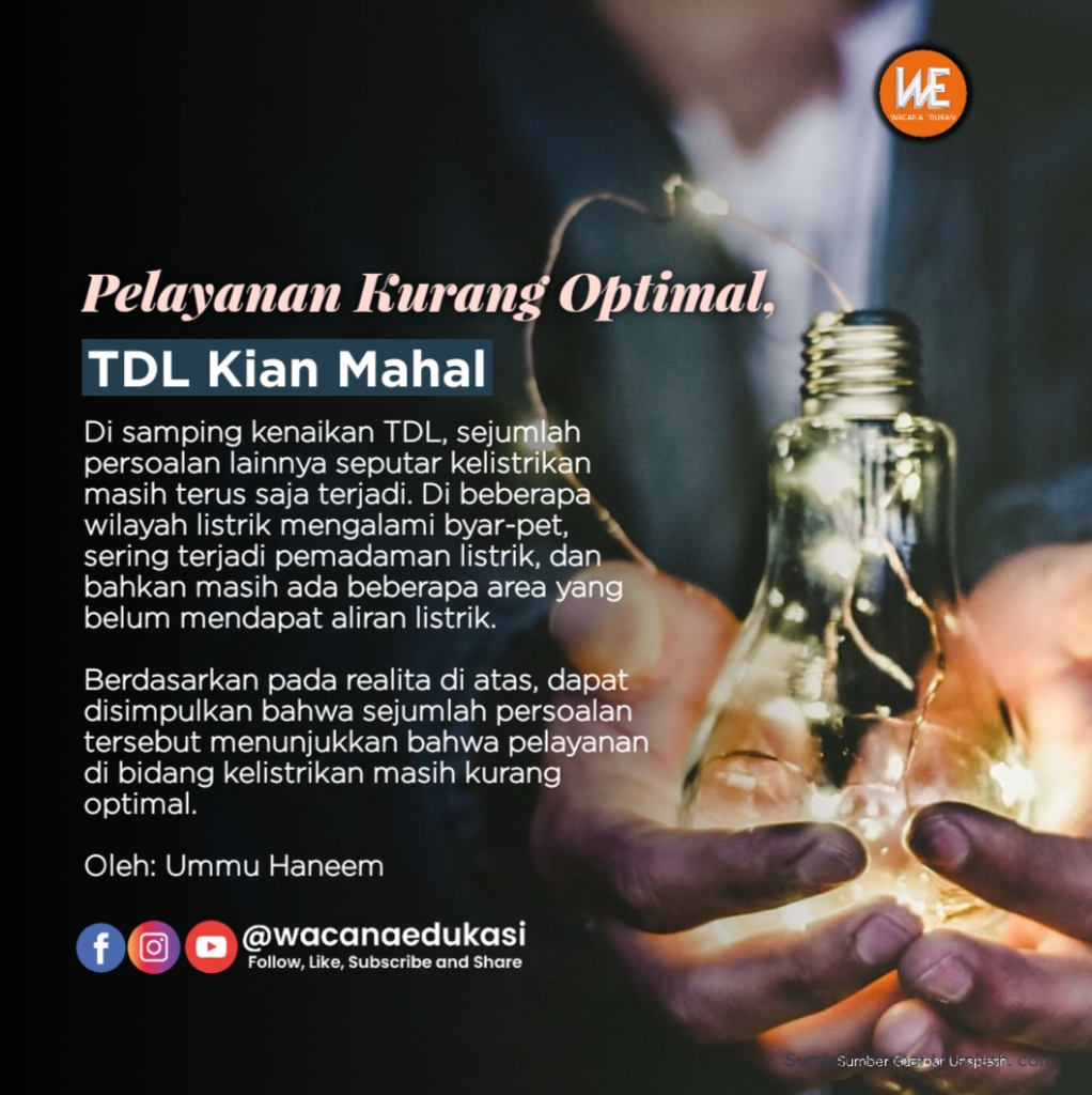 Berdasarkan pada realita di atas, dapat disimpulkan bahwa sejumlah persoalan tersebut menunjukkan bahwa pelayanan di bidang kelistrikan masih kurang optimal. Jika dirunut, maka hal ini merupakan buah dari penerapan sistem ekonomi kapitalis. Sistem ini membuat hubungan penguasa dan rakyat layaknya pedagang dan pembeli. Dalam hal ini, listrik menjadi komoditas barang yang diperjual-belikan. Pedagang berupaya mengeruk keuntungan sebanyak-banyaknya. Tak peduli, yang menjadi pembelinya adalah rakyatnya sendiri.