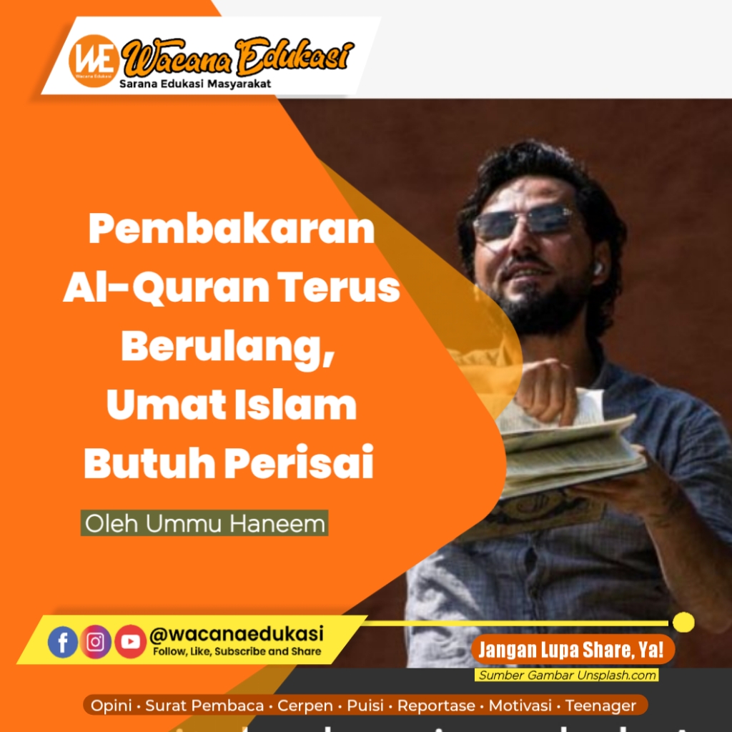 wacana-edukasi.com, SURAT PEMBACA– Perih! Satu kata yang mewakili perasaan umat Nabi Muhammad Saw. saat ini. Pasalnya, pembakaran Al-Qur’an terus berulang. Meskipun umat Islam meradang, tetap saja tak diindahkan. Tampaknya Salwan Momika, si pelaku pembakaran Al-Qur’an di depan halaman masjid terbesar di Swedia tidak memiliki rasa gentar sedikit pun. Ia berani menorehkan luka pada saat umat Islam tengah bersuka cita merayakan momen Idul Adha.
