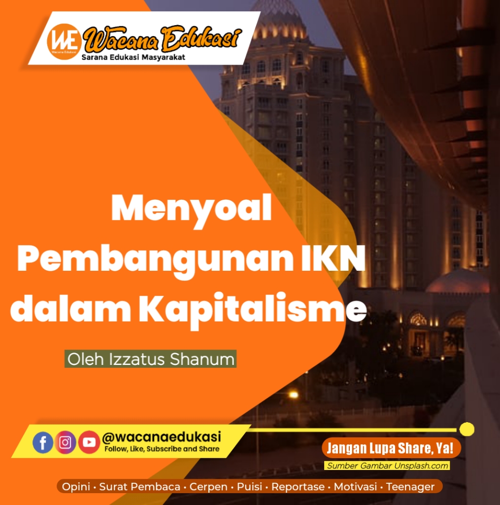 Proyek IKN ini sangat terlihat sebagai proyek yang di paksakan, sudah banyak bukti pembangunan proyek tersebut melahap tanah warga, tanah adat dan lainnya. Sayang nya sekali pun warga berusaha melakukan protes,namun tidak dihiraukan oleh penguasa, ini adalah konsekuensi yang tidak logis yang di lahirkan sistem kapitalisme. Sistem ini tidak menjadi kepentingan rakyat sebagai prioritas kebijakan, kebijakan dalam sistem ini dipengaruhi oleh asas untung rugi korporasi, karena ketika sebuah pembangunan dilihat menguntungkan, bagaimana pun caranya proyek itu harus direalisasikan, meski harus mencaplok tanah rakyat.