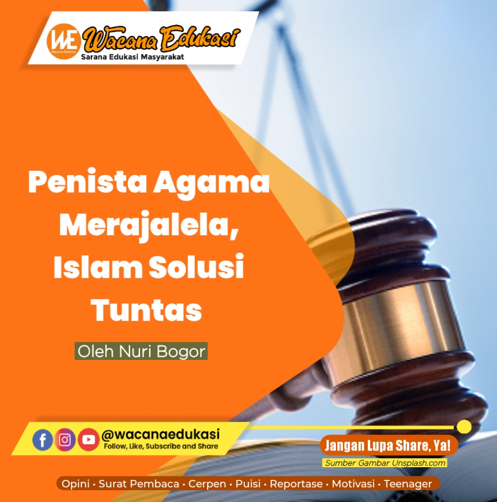 Penistaan terhadap agama Islam terus saja berulang, seakan tidak ada solusi yang bisa menyelesaikannya. Penerapan sekulerisme yang memisahkan agama dari kehidupan dan menjadikan agama sebagai urusan individu, sedangkan kebebasan individu dijunjung tinggi dengan dalih hak asasi sehingga pelecehan dan penistaan dianggap biasa. Dan akhirnya para penista agama bebas berekspresi tanpa ada sanksi yang membuat efek jera. Inilah buah dari sistem sekuler, negara telah kehilangan fungsinya menjaga kemuliaan agama Islam dan umat Islam.