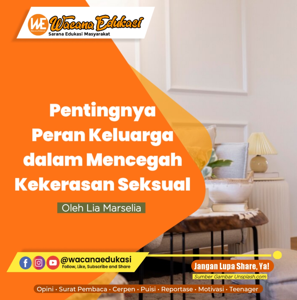 wacana-edukasi.com, SURAT PEMBACA– Kekerasan seksual terhadap anak kian hari kian meresahkan. Bahkan, sebagian pelakunya bukanlah orang asing melainkan keluarga terdekat atau masyarakat yang dikenal. Staf Ahli Menteri Bidang Pembangunan Keluarga Kementerian Pemberdayaan Perempuan dan Perlindungan Anak (KemenPPPA), Indra Gunawan pada Ahad (27/8/2023) menyatakan bahwa keluarga dan masyarakat dapat berkontribusi dalam pencegahan tindak pidana kekerasan seksual (TPKS). Sebab, keluarga sebagai lembaga terkecil harus menciptakan rasa aman bagi anggota keluarga dan melindungi anak-anak dari kekerasan seksual.