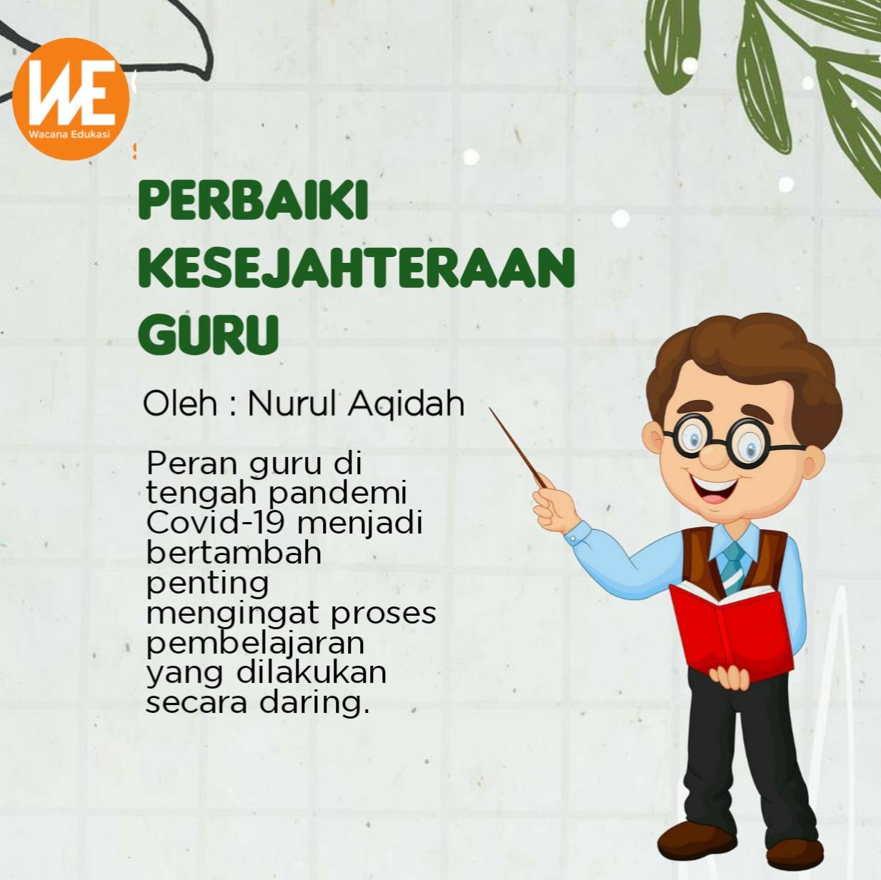 Peran guru di tengah pandemi Covid-19 menjadi bertambah penting mengingat proses pembelajaran yang dilakukan secara daring. Guru harus benar-benar berupaya semaksimal mungkin agar siswa dapat memahami materi yang disampaikan secara online. Hal tersebut mengharuskan guru untuk lebih inovatif dalam menguasai teknologi sebagai media pembelajaran.