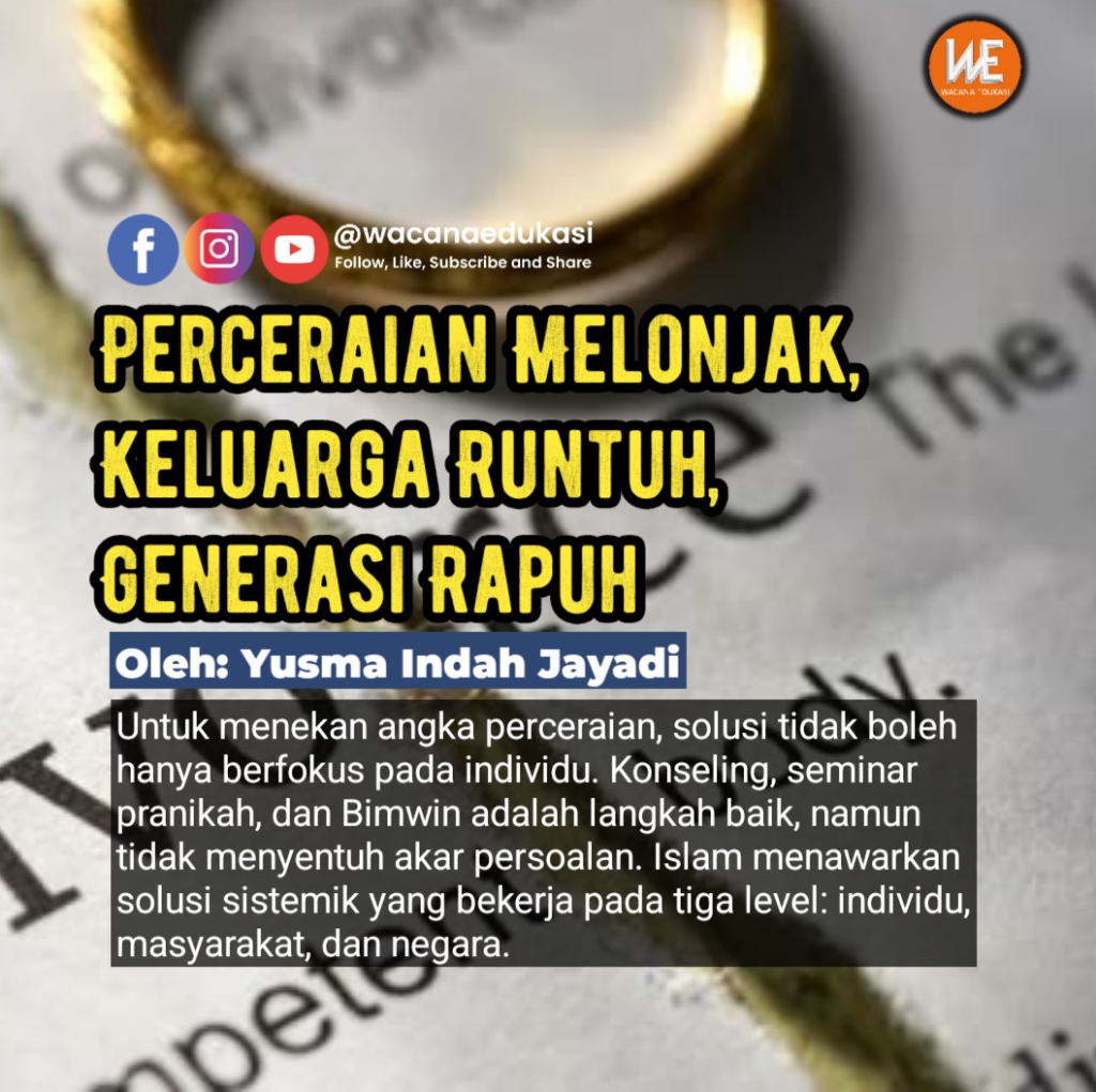 Berulangnya pola perceraian di banyak daerah menunjukkan bahwa masalah ini tidak hanya bersifat personal, tetapi juga struktural. Sistem pendidikan modern mengutamakan akademik tetapi mengabaikan pembentukan karakter, emosi, dan nilai keluarga. Sistem pergaulan sekuler melonggarkan batas interaksi, membuka pintu pada perselingkuhan digital, kecemburuan, serta gaya hidup impulsif. Sementara itu, sistem ekonomi kapitalistik membiarkan biaya hidup melambung tanpa jaminan kesejahteraan, memicu stres yang akhirnya berujung pada konflik rumah tangga.