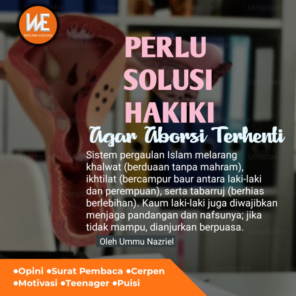 Wacana-edukasi.com, SURAT PEMBACA– Sistem yang dibuat oleh manusia tidak pernah lepas dari kekurangan. Hal ini menyebabkan berbagai persoalan sosial semakin kompleks, termasuk fenomena aborsi yang kian marak. Salah satu penyebab utamanya adalah pergaulan bebas yang didorong oleh sistem sekularisme liberal. Akibatnya, generasi muda terjerumus dalam perzinaan, yang seringkali berakhir pada tindakan aborsi.