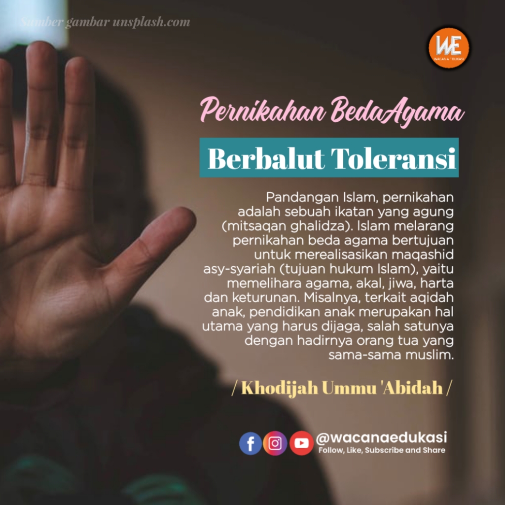 Cukuplah bertoleransi dengan saling menghargai, menghormati dan membiarkan untuk menjalankan ajaran agamanya masing – masing, bukan dengan nikah beda agama dan tanpa mencampur aduk ajaran agama (Qs. Al-Kaafirun :6). Seorang Muslim harus terikat dengan seluruh syariat tanpa tapi dan tanpa nanti (Qs. Al-Baqarah: 208), hal ini hanya bisa terwujud dalam sistem Islam yaitu instusi Khilafah Islamiyah. Wallahu A’lam